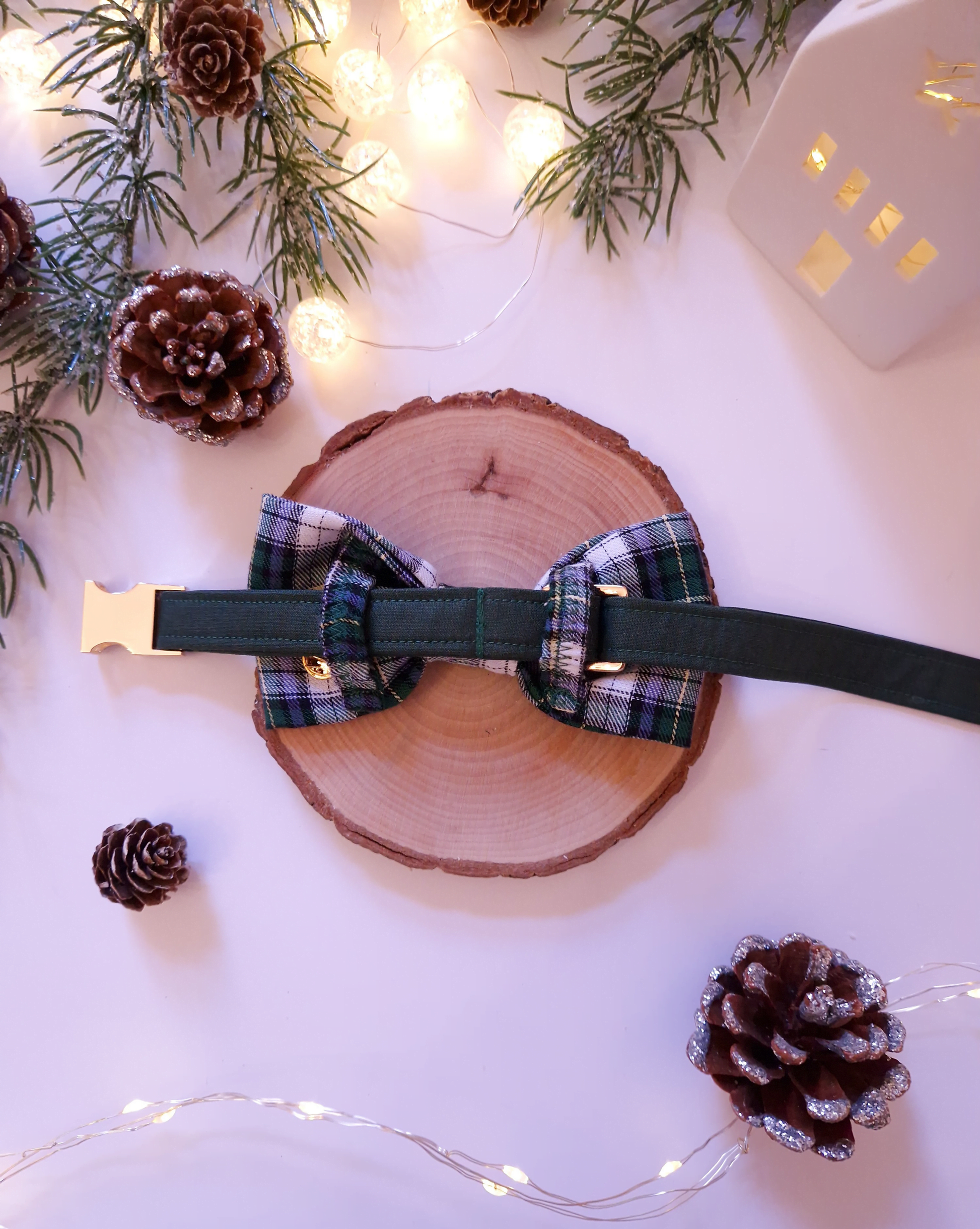 Elegance and holiday charm come together in the Winter Wonderland Bow Tie, made of 100% cotton flannel in a beautiful green tartan pattern. Soft and comfortable, it is ideal for gentleman dogs who want to look refined and stylish during walks or special occasions.