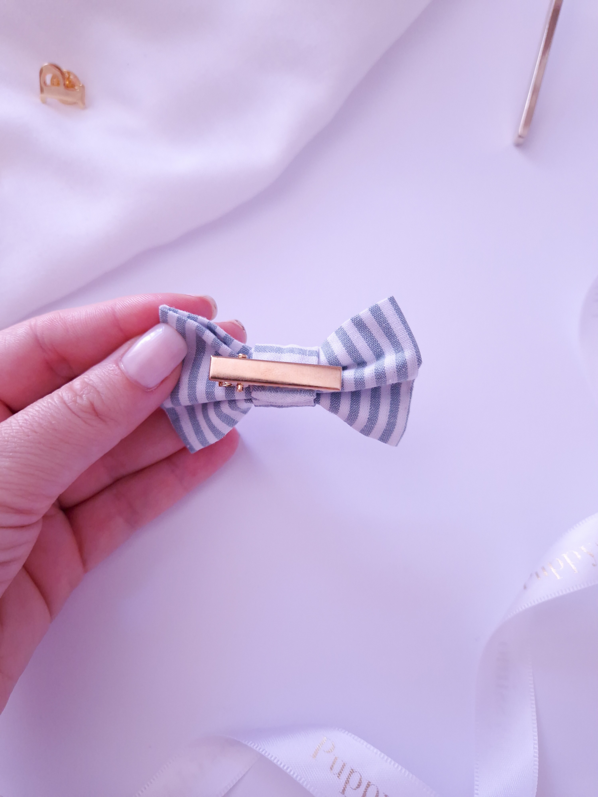 The Minty Stripes bow combines practicality and charm, turning everyday moments into little fashion stories.
