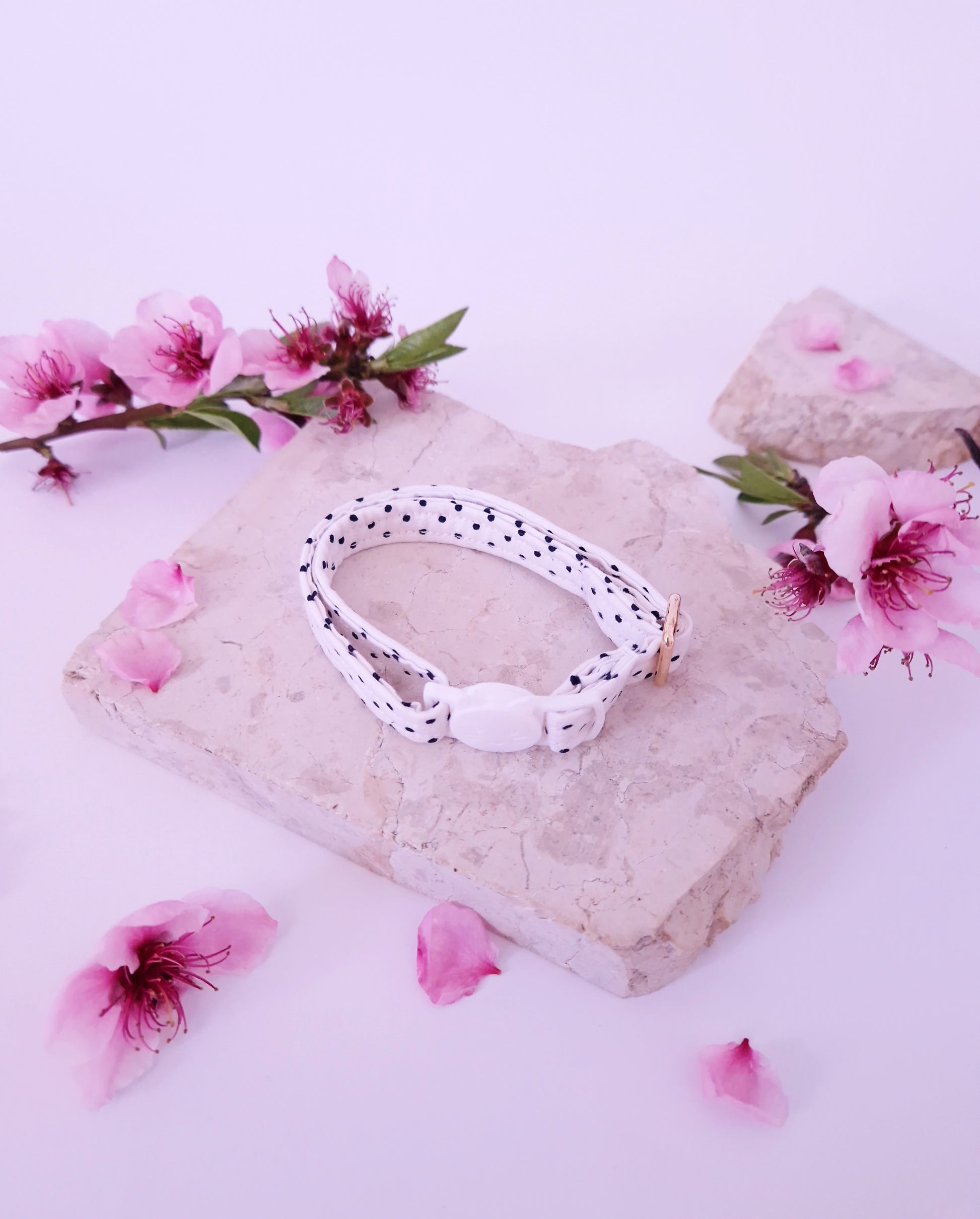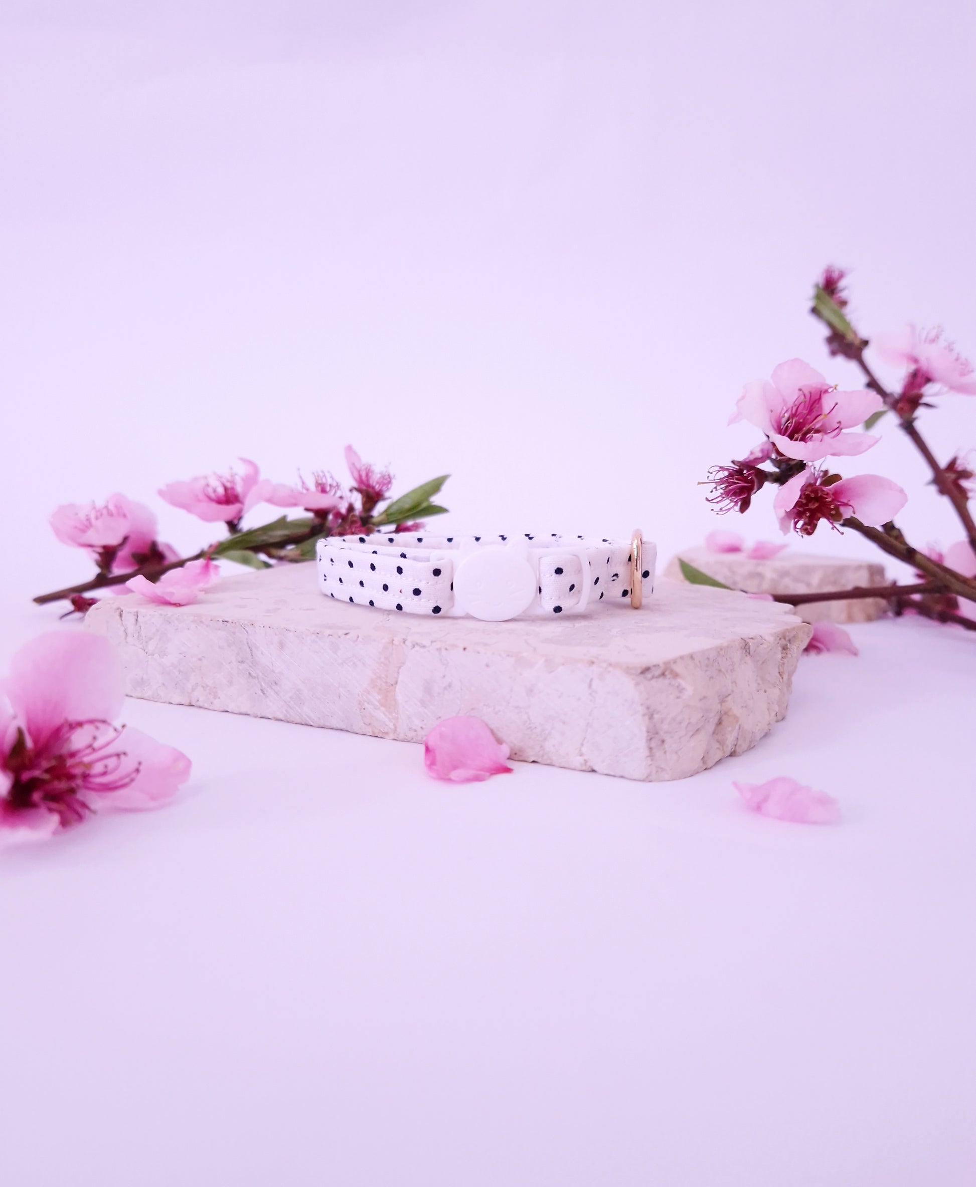 Inspired by Parisian elegance, the Parisienne collar in white with black dots brings a sophisticated and playful look to your cat. It is made of 100% certified cotton inside out, making it extremely soft and gentle on the skin. Like all Puppyssimo products, it is hypoallergenic and safe, suitable even for cats with sensitive skin.
