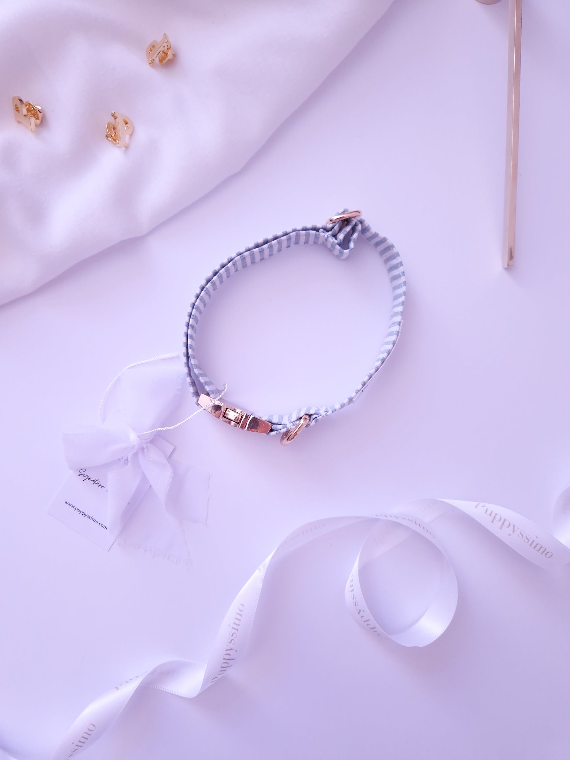 The Minty Stripes collar combines comfort, safety and luxurious design, making every walk a special and stylish experience.