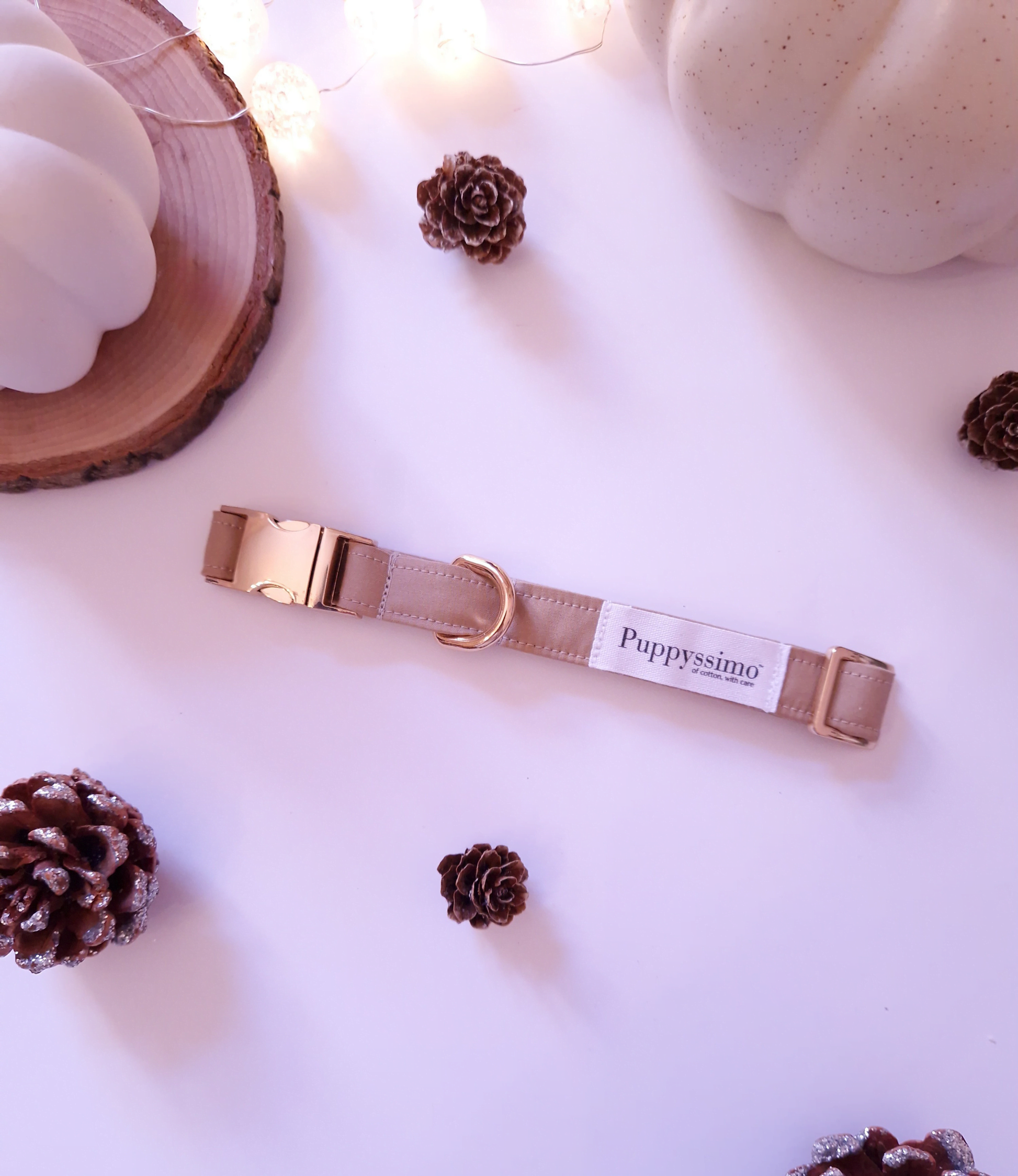 The Warm Oat collar is made from 100% cotton fabric in a soft, warm beige shade that exudes simplicity and natural charm. With an inner cotton webbing for security and softness and a gold zinc alloy buckle that gives it a sophisticated finish, this collar is the perfect blend of style and comfort.