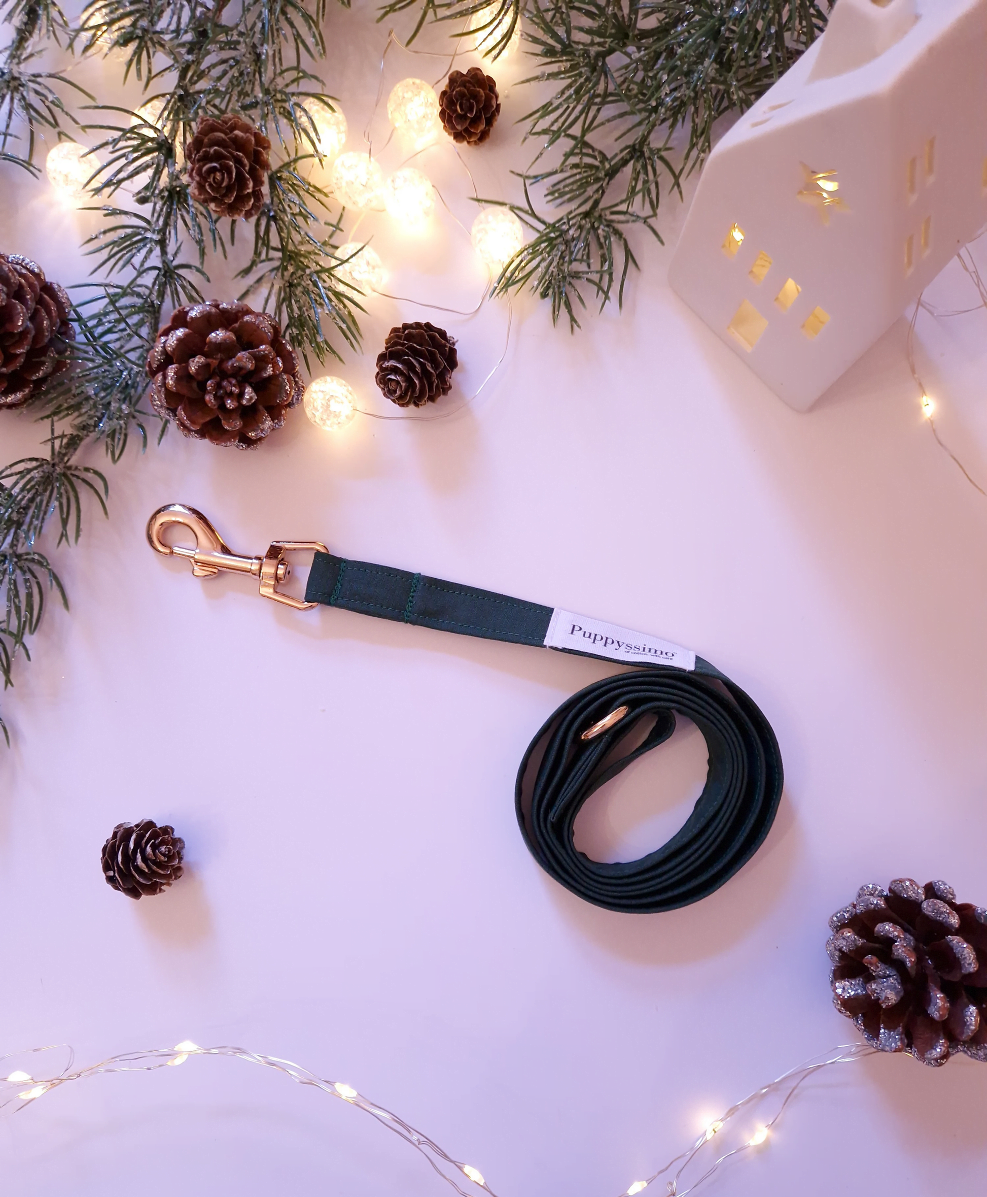A combination of natural elegance and everyday practicality β the Forest leash is made of 100% cotton fabric in a dark green shade, with a strong nylon webbing inside for durability and safety. The golden zinc alloy buckle gives it a refined look and fits perfectly with the collar and harness from the same collection and from the Winter wonderland collection.
